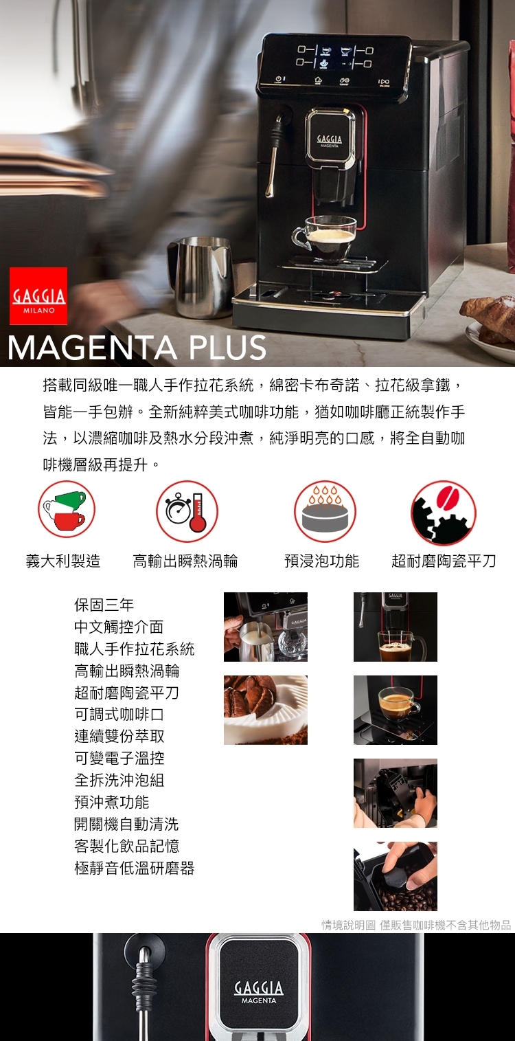 搭載同級唯一職人手作拉花系統,綿密卡布奇諾、拉花級拿鐵,皆能一手包辦。全新純粹美式咖啡功能,猶如咖啡廳正統製作手法,以濃縮咖啡及熱水分段沖煮,純淨明亮的口感,將全自動咖啡機層級再提升。義式咖啡機領航者,GAGGIA咖吉雅